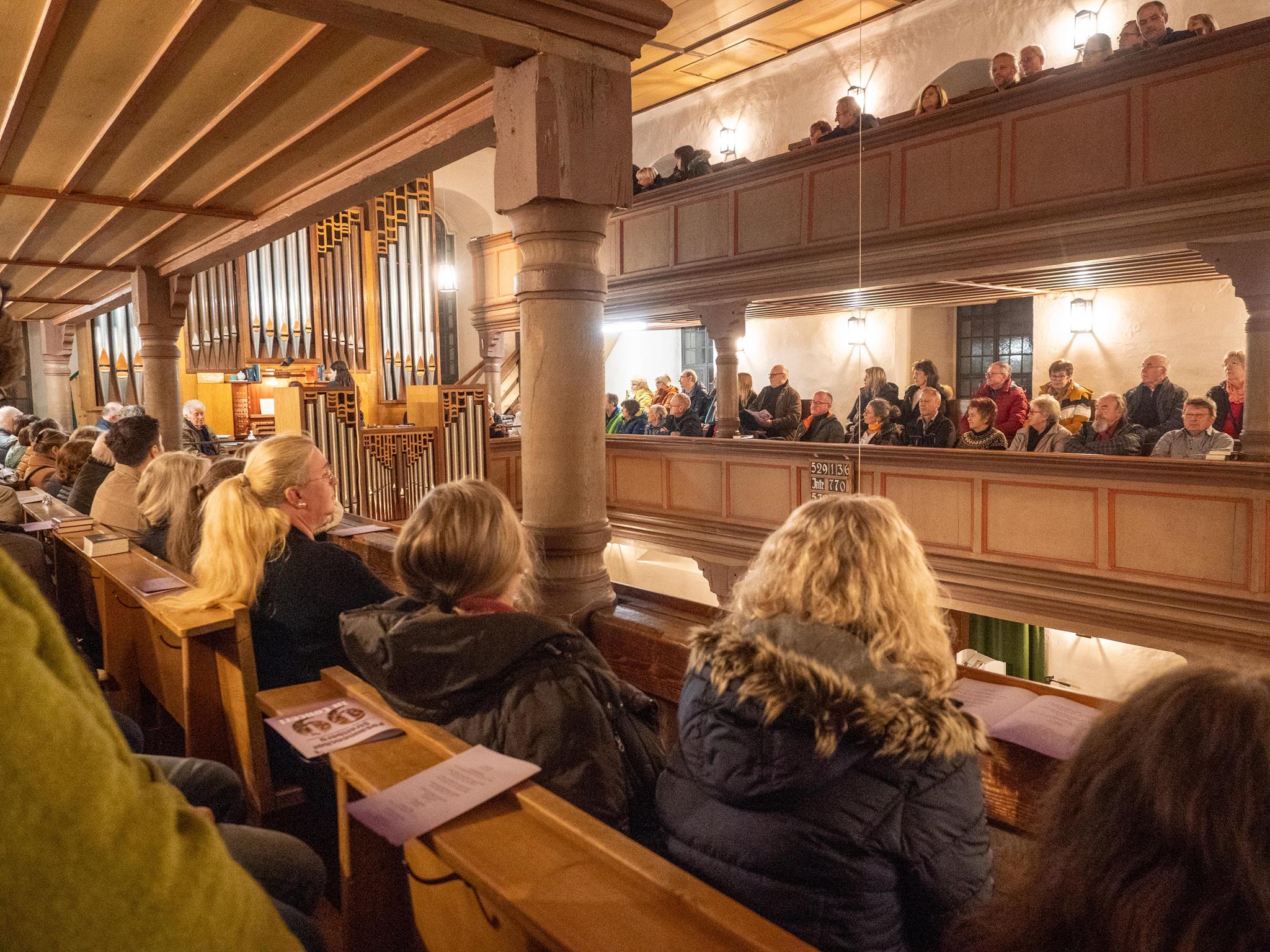 An der Orgel bereicherte Dekanatskantorin Stephanie Spörl gekonnt das musikalische Abendprogramm, unter anderem durch eine anspruchsvolle moderne Bearbeitung des Chorals „Ein feste Burg ist unser Gott“ von Matthias Nagel.