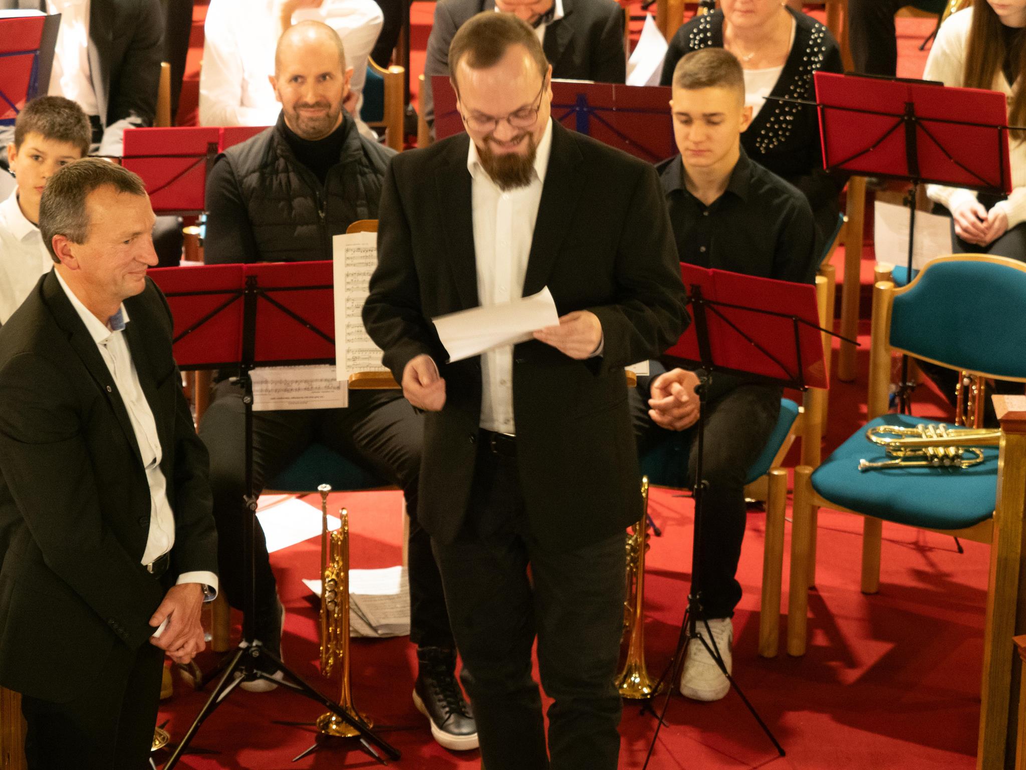 Pfarrer David Kieslich führte durch den kurzweiligen Abend und dankte Dietmar Zimmermann für 25 Jahre Chorleitung. Ihm sei es zu verdanken, dass der Chor nicht nur keine Nachwuchssorgen habe, sondern auch durch die Freude an der Musik die Generationen verbinde. So ist das jüngste aktive Mitglied 13 Jahre alt und das älteste 70 Jahre. Der stellvertretende Chorleiter Johannes Opitz wurde für 25 Jahre Mitgliedschaft geehrt.